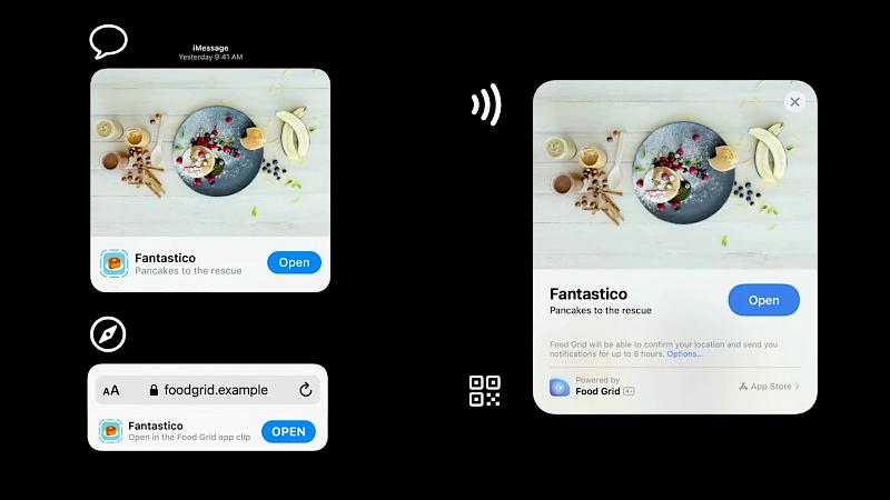 - Nachrichten: App Clips können auch über iMessage geteilt werden, zum Beispiel als einfache Möglichkeit eine Bezahlung für eine telefonische Bestellung abzuschließen.